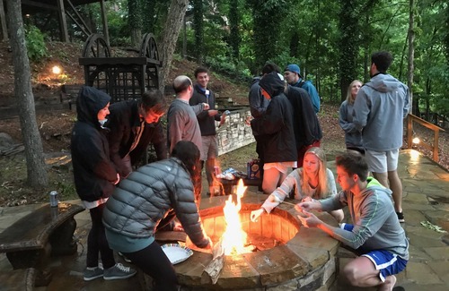 The outdoor all stone fire pit overlooking the lake is a guest favorite as well! It even has gorgeous stone benches to sit on surrounding the fire pit, perfect for relaxing around the fire while you roast your smores. We even supply all the wood!