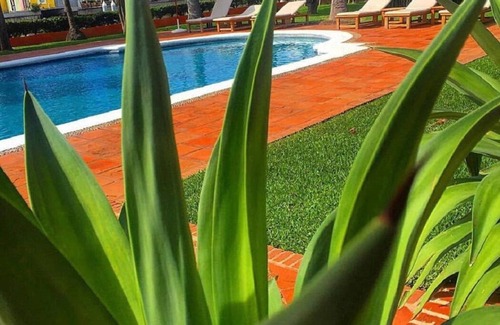-Behind the pool, it has a large garden with tall trees and palms that make you feel in touch with nature.