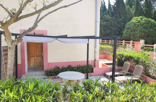 The cottage is bordered by a landscaped park with tall trees and a petanque court. On the edge of the park, you will find, in summer, a 10x5 outdoor swimming pool to share, with a large terrace equipped with deckchairs and umbrellas.