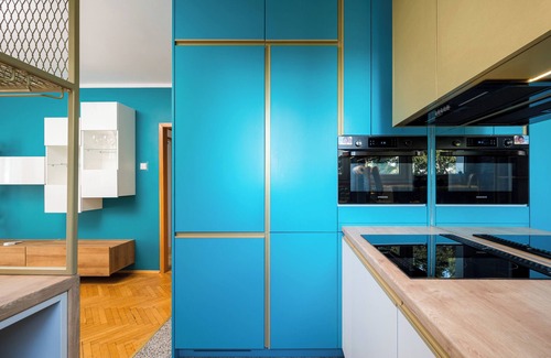 Metro Słodowiec Charming Apartment includes a living room with a sofa bed and a kitchenette, a bedroom with a comfortable double bed, a bathroom, and a balcony where guests can unwind and enjoy morning coffee or an evening glass of wine. Guests can make use of many amenities provided in the apartment, including free Wi-Fi, a washing machine, an iron, a hairdryer, a dishwasher, an oven, a fridge with a freezer, a kettle, and kitchenware. In addition, the apartment is equipped with air conditioning, providing great comfort, especially during hot days. Guests can use the public parking available nearby without guaranteed spaces and with a possible additional fee.