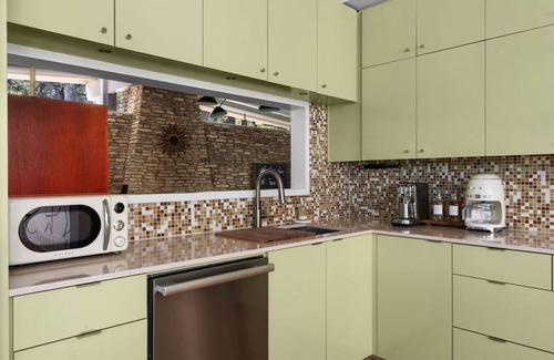 Stay in this iconic mid-century modern home in Austin’s Zilker Park, designed by famed local architect AD Stenger. Thoughtfully furnished with high-end mid-century pieces, the home is bathed in natural light with large windows overlooking lush surroundings. Located just steps from Zilker Park, Barton Springs, and the ACL Festival, this stylish retreat offers the perfect blend of relaxation and access to Austin’s top attractions. Book now for a truly unique stay!
