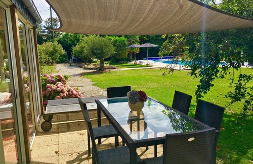 Penty of charm, located in a property of 5000 m2 with large private heated pool. 1 large bedroom upstairs: 1 large king size bed. Living room with 1 sofa bed quality for 2 people + 1 comfortable bed for 1 person, new kitchen of 2019 fully equipped, bathroom with shower. Very nice veranda, overlooking the pool and a nice south facing terrace full big screen connected TV + netflix, DVD, Playstation game console, wi fi, barbecue, nothing is missing.