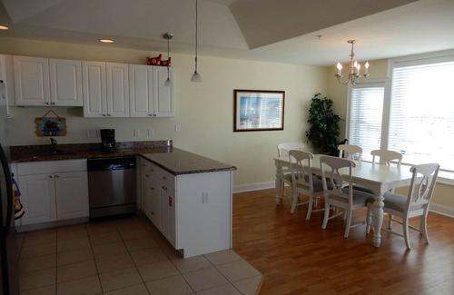 The living, dining, and kitchen "great room" areas are very spacious with plenty of room for the whole family to gather together. Other amenities include elevator access, a washer/dryer in the unit, outdoor showers, two car reserved parking underneath the building, and a private beach storage room with beach chairs and an assortment of other items for guest use.