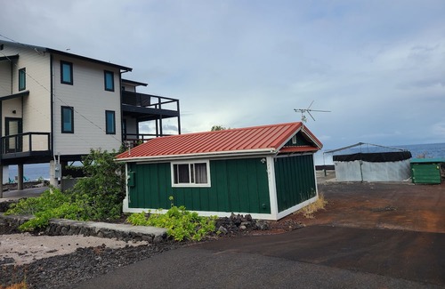 I'm offering my ocean front studio for your your vacation stay in Hawaii. It's really nothing fancy, but it's clean, with a king size comfortable bed, full size fridge and apartment size gas range,in a fully stocked kitchen. The kitchen has a microwave, blender, coffee maker, coffee bean grinder, toaster,and a rice maker. AND about every cooking utensil you can think of, with quality pots and pans too. I'll be sure that there is a few spices and cooking oil on hand. Also indoors there is a table and chairs for dining and a desk with chair for your computer. I have a large TV with a comfy chair inside too. But the best part is out side under the tarp, where you can watch the ocean. I've seen dolphins, whales, flying fish, jumping fish, boats of all sizes and snorkelers of all sizes:) I'm also telling you, sitting outside under the tarp enjoying the sunsets and sunrises can't be beat. The tarp outdoors provides shade during the day for ocean watchers and also has lights for night for out doors dining with a charcoal BBQ grill.