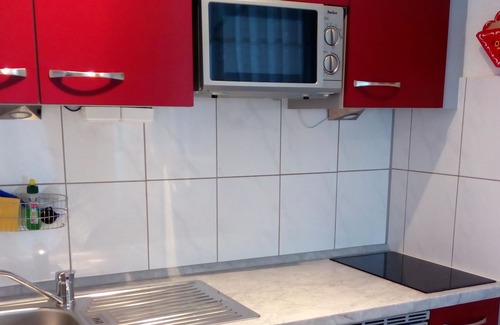 The balcony has a south-west orientation. Dishwasher, hot water kettle, coffee machine, toaster, fridge and small oven as well as sufficient dishes for 2 people