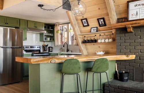 Welcome to Skye Haus, a newly updated biophilic A-frame retreat designed to help you reconnect with nature. Nestled among the mountains, enjoy epic stargazing, breathtaking views, and the ultimate chill vibe. Unwind by the wood-burning fireplace, soak in the 6-person jacuzzi, or challenge friends in the full game room — your perfect mountain getaway awaits!