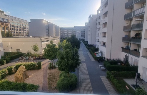 In the immediate vicinity, there are various sharing options (car, scooter, e-scooter, bicycle, etc.). Supermarkets and shops are within walking distance: Lidl and Rossmann are 2 minutes away, Rewe is 6 minutes away, Friedrichstraße with many shopping options is also 6 minutes away, and the Mall of Berlin is about 12 minutes away.