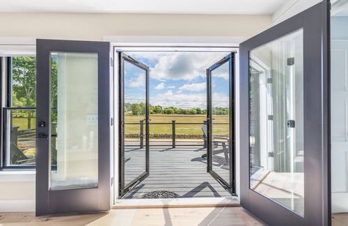 Welcome to our new custom built beach home paradise. My wife & I are very excited to share our dream home with our guests. A modern, cottage-chic home that is warm and inviting with tranquil field/pond/ocean views. We love the open floor plan and 3 custom Italian marble bathrooms with a 2 floor wall of windows letting in loads of eastern facing sunlight. Enjoy the views from 2 large decks off the east & west sides of the home as the main living space is located on the 2nd floor with a 3rd floor loft area. Fully fenced in level back yard with outdoor shower and horseshoe pit