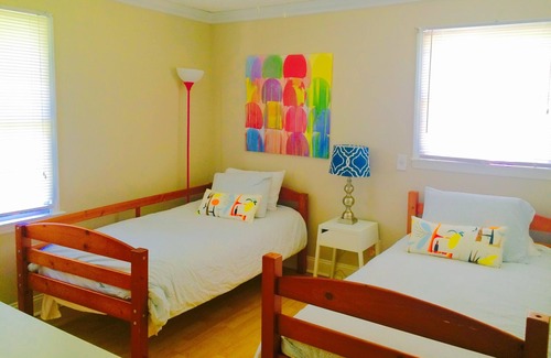 This home is 1000 sq ft with 3 bedrooms and 1 bathrooms. Master bedroom has a queen sized bed, second bedroom two twin beds, third has three twin beds. Zen back yard with nice stone patio and fire pit. Small pets are welcome. Direct TV package has innumerable movie and sports channels. High speed WiFi available. Off street/free parking. Drive 10 minutes and take the light rail to uptown Charlotte. Across the street from the house is Walter Elisha Park and Alice Springs Close Greenway, a 2,100 acre nature preserve in Fort Mill, South Carolina, was dedicated to the public to serve as a natural buffer from urban development and a place for countless activities – from hiking, mountain biking and horseback riding, to picnics, kayaking and more. Many restaurants and shopping very close to home. Washer/dryer with detergents are provided. Also, coffee maker with coffee/cream/sugar.