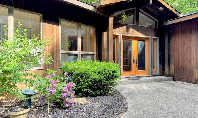 From the moment you turn off 72nd Street and down the tree-lined drive, you'll feel it: a shift in energy. Towering pines welcome you with dappled sunlight and quiet stillness. Wildhaus sits nestled in its own forest sanctuary, with panoramic views of nature from every window.