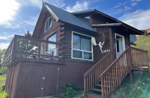 640 ft.² of cozy serenity! This is my private home, but I will be traveling for a few months, and want to offer it to you. 55” TV with Internet, one bedroom with loft and a queen size futon, full size log futon in the living room. So we can truly accommodate three couples. All new appliances, including stove with an air fryer function. Beautiful front deck overlooking Kachemak bay and the mountains. Fire pit, plenty of parking. This is a full cabin, not a cottage on someone else’s property or attached apartment. You have the full run of the place. I’ve seen moose, bears, ptarmigan, pheasants, snowshoe hare, eagles, and many other types of wildlife from my deck. This is the only residential home being rented on the street. The sunsets are absolutely amazing, bring your cameras because the most important part of enjoying this property is being on the deck grilling and having a cold beverage.