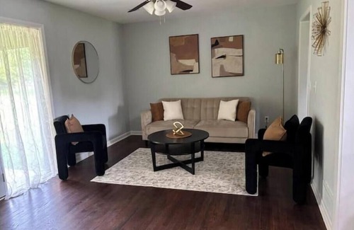Beautifully renovated 4-bedroom, 3-bathroom home in the sought-after Marietta neighborhood. This stylish walk-out split-level home features a private bedroom and full bath on the lower level- perfect for groups and families.