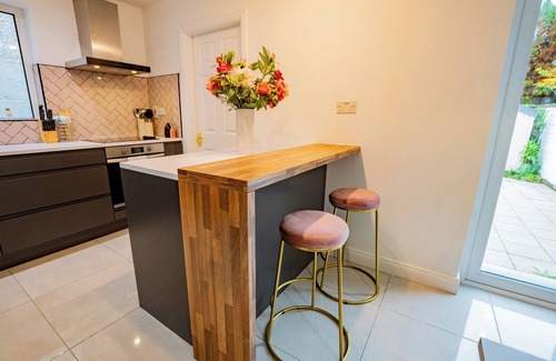 The open-plan kitchen and dining area is perfect for cooking and enjoying meals together, while the separate sitting room offers a cozy space to relax after a day exploring the city. A utility room is also available, ideal for longer stays. Enjoy free parking on-site, a rare bonus in the city.