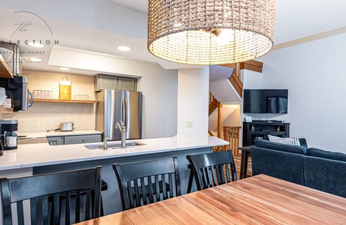 With three bedrooms and three full bathrooms, this spacious townhome is perfect for families and friends and accommodates up to 8. The open living and dining area, complete with a floor-to-ceiling wood-burning fireplace and large patio, offers stunning views and ample space to relax and unwind. The bedrooms are all outfitted with comfortable king-sized beds and Smart televisions, with ensuite bathrooms, and a bonus living room on the lower level - the perfect place to send the kids. The lower level also features a sleeper sofa for an additional spot to rest.