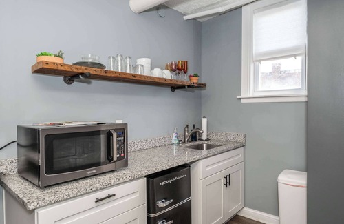 Right across the river from Cincinnati, the city of Newport is a destination in its own right, with bustling streets and plentiful nearby attractions. When you’re not out and about exploring the many local shops and restaurants, this 3rd floor apartment is ideal space to call home with a bright and open living space welcoming you as soon as you step through the front door. But perhaps one of its best features, this apartment is located right on top of the 927 Reserve Bourbon and Cocktail Bar, positioning you just steps away from happy hour or a night cap.