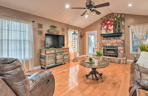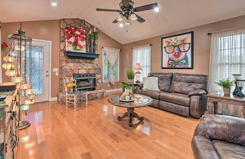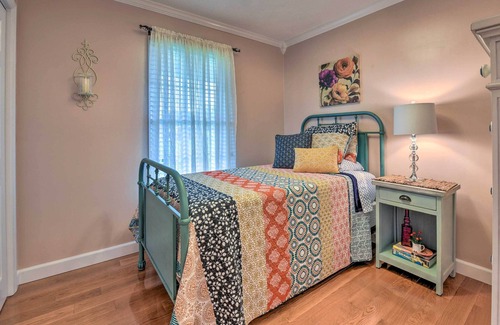 Find your rustic paradise at this 3-bedroom, 2-bathroom home. This Mount Airy vacation rental is so well-equipped that you might not ever want to leave. Dive into the fenced outdoor pool, watch the Smart TV on the large screened porch, or sit on the front porch swing and watch fluffy clouds roll across the North Carolina sky. When you aren’t enjoying the colorful interior and spacious patio, head into town to visit the famous Andy Griffith Museum or taste the area’s wine at Round Peak Vineyards.