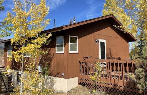 Cozy ranch home having large rear deck overlooking town and mountain range with sunset view in the evening. Secluded setting on one acre amongst aspens and pines. Home has terrific location one mile off of Interstate 70 in Silverthorne with easy access to shopping and restaurants. The popular ski resorts including Breckenridge, Copper, Keystone and Vail are within 20 - 45 minutes. Summer fun including hiking and biking as well as Lake Dillon and the Blue River for kayaking and fishing.