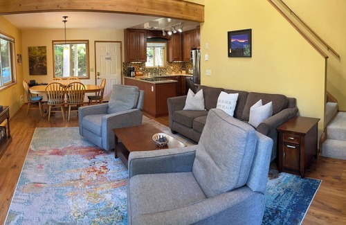 Enjoy your morning coffee and take in the view of the Olympic Mountains on the master bedroom balcony. The beautiful, updated kitchen has everything you need: new, stainless-steel appliances, toaster, microwave, crock pot, Keurig coffee maker, dishes, silverware, pots & pans, cookware and bakeware. Cook outdoors on the propane grill and eat alfresco on the large deck that sports a partial view of the lake and remote-controlled awning.