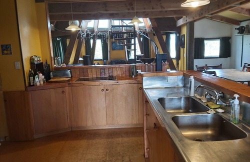 This is a very special family bach. It is the right hand side of the photo, the left hand side is rented to ski workers for the winter. It is communal sleeping and you need to bring your own linen. A woodburner keeps the house warm. The grounds are beautiful and although it is still in Ohakune township it still has the feel of being in the country. There is a woodburner to keep everyone cosy and a large kitchen with a gas and electric hob. There is a screen with an HDMI cable, byo devices.
