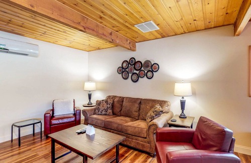 This stylish, two-level home incorporates part of a 1920s cabin to offer unique living spaces with plenty of desirable amenities. Share updates about your vacation with friends and family back home thanks to the free WiFi. Keep up with your favorite shows or watch a movie or two on one of the cable TVs. Head outside and dine on the furnished deck complete with a gas grill if you want to have a family cookout, or enjoy a relaxing soak in your very own hot tub. End the day around the firepit telling stories or planning your next adventure.