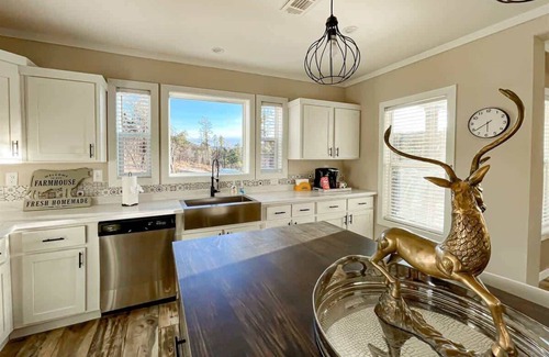Introducing Mountain View Lodge - a new, luxurious hideaway with stunning hillside views. It's been thoughtfully curated by an expert designer and offers a range of modern amenities. You'll find peace and quiet here as it neighbors the national forest, and stargazing from the hot tub is sure to be a trip highlight.
