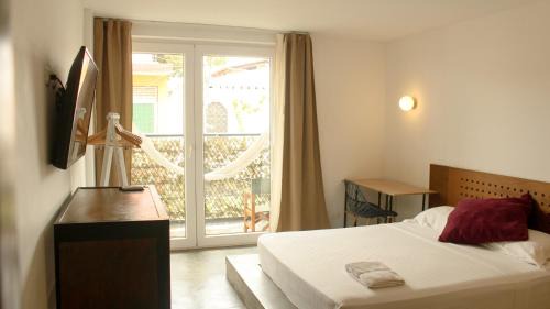 BathroomHairdryer, Toilet, Private bathroom, Conditioner, Body soap, Free toiletries, Towels, Toilet paper, Shampoo, ShowerGeneralAir conditioning, Key card access, Trash cansOutdoorsBalconyKitchenRefrigeratorLiving AreaDeskMedia & TechnologyFlat-screen TVBedroomLinensAccessibilityUpper floors accessible by stairs onlyRoom AmenitiesClothes rackViewQuiet street view |