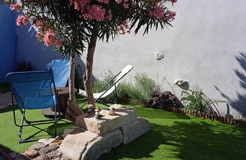 Enfin pour un cadre plus chaleureux et le plaisir de s’installer en plein air, la maison est dotée d'un jardinet de 35 m2. On peut y trouver un coin composé d'une table, agréable pour prendre le petit déjeuner au soleil. Sont aussi mis à disposition trois transats, un parasol et un barbecue traditionnel équipé.