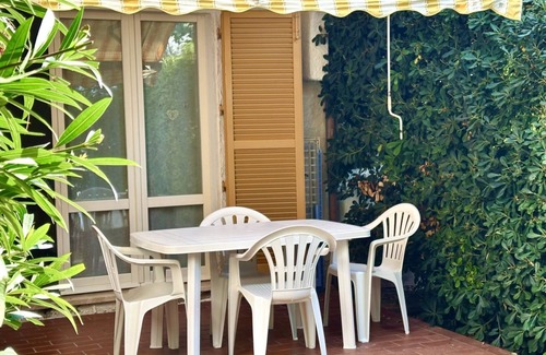 Living room with dining table, kitchenette and double sofa bed - bedroom with double bed - bathroom with shower and washing machine - lovely private garden completely fenced equipped with table and chairs - private and reserved parking space.