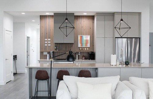 • Fully stocked kitchen with double oven, Quartz island, and pantry