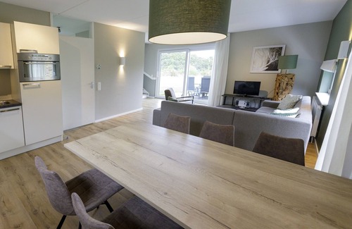 Relax in Modern Comfort Nestled within the scenic Eifeler Tor Resort, this detached villa offers the perfect blend of comfort and nature. The spacious living area is designed for relaxation, while the open kitchen makes dining together easy. Guests can unwind in the private sauna or enjoy the fresh air from the furnished terrace overlooking the Rursee. Families will love the shared pool and play facilities, while pet owners can take advantage of pet-friendly walking trails right outside the resort. Explore Nature and History The villa is surrounded by the beauty of the Eifel National Park, where hiking, cycling, and lake activities create unforgettable experiences. The nearby Rursee is ideal for boating and picnics, while the medieval charm of Heimbach with its castle and art exhibitions adds a cultural touch. Monschau, a picturesque town just a short drive away, offers cobblestone streets, historic timber houses, and unique boutiques, making it a must-visit during your stay. Savor Local Flavors After a day of adventure, treat yourself to local delicacies nearby. Try Der Seehof for hearty regional dishes with stunning lake views or Haus am See for fresh seasonal cuisine. For a cozy evening, Restaurant Zur Post in Heimbach serves traditional German specialties in a welcoming atmosphere. Many spots offer outdoor seating, so even your four-legged companions can join in.