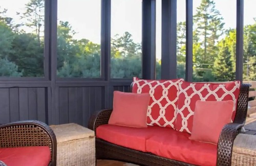 Relax on the covered porch and watch the frequent deer visitors or enjoy bug-free lounging in our Muskoka room.
