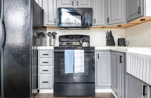 Inside you'll enjoy a fully stocked kitchen with dining sets and table space for 12, comfortable hybrid memory foam beds, and cozy fireplaces in all common areas. We have Roku smart TVs on each of the TVs for you to access all of your comfort content with your own logins during your stay. You are also welcome to use either of the gas fireplaces or wood stove. during your stay.
