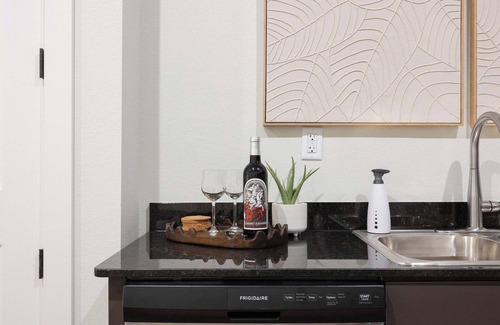 Experience premium comfort just 5 miles from XNA in Northwest Arkansas' first luxury accommodation near the airport. This modern one-bedroom condo offers business travelers a sophisticated base with all the essentials for a productive stay. Enjoy seamless travel with our convenient location—less than 10 minutes from the airport and 15 miles from Downtown Bentonville.