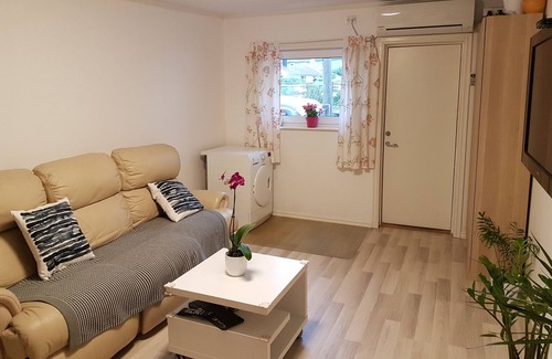 Nice and nice room. The room is located just off Fredrikstad bridge. 1 km or 1000 meters to train station, 10 min to walk. 1.5 km to the center, 15 min to walk. 150 meters to grocery store. open until 22.00 and Sunday opened. 1.8 km to the old town. Nice walk / cycle path along the river into Old Town, about 20 min to walk. Terrace by the room for free use. If you want a clean, nice and good standard, you will rent here.