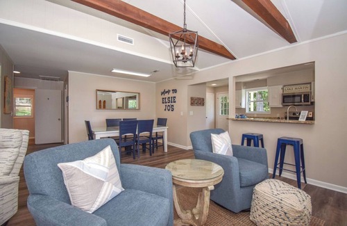 Welcome to Elsie Jo's on Lake Martin! This adorable cabin is QUINTESSENTIAL Lake Martin, y'all! You will see exactly what we mean when you enter this beautiful nautically inspired home in Dadeville. Walk into the bright and fully stocked kitchen that includes a separate ice maker to fill up that cooler before you head out on the water for the day! There is a countertop bar with two stools for a quick service meal or a full dining table that seats 6 just off of the kitchen. As you walk into the cozy living room, your attention will immediately be drawn to the left where you will see that SPECTACULAR Lake Martin view.! The living room has super comfortable seating including a queen size sofa bed and a large screen TV.