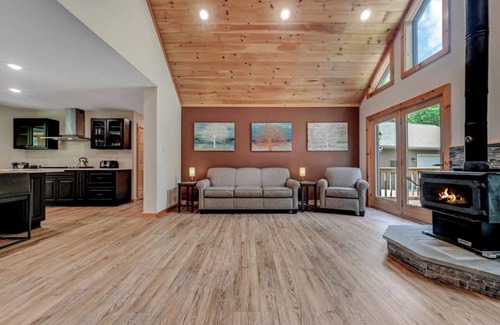 Relax with friends and family at this newer home tucked away in a peaceful setting. Located in the Lake Wallenpaupack region, with a close proximity to all area amenities, book a getaway to remember. Located down a long private driveway is the home with plentiful free parking. There is a fenced yard, so feel free to bring your dog! There is a hot tub outside as well. Everything in the home is new, and you are a short distance to skiing, the lake, river, and more. We look forward to having you.