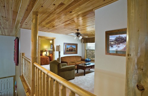 You will enjoy a king bed in the master bedroom, one queen or two twins in the second bedroom and a queen sleeper sofa in the living area. Additional amenities include a full kitchen and separate living/dining area, a washer/dryer, and porch. This is a townhouse style suite with stairs inside. Maximum occupancy is six. Private sleeping area sleeps four.