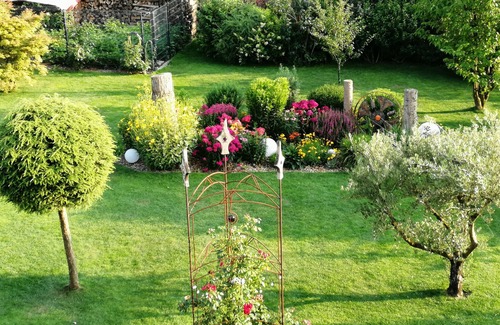 Our bright and very spacious apartment is located on the first floor of a 2-family house with private entrance. We designed the apartment very open, so we only have a single bedroom but six comfortable sleeping options. Two modern bathrooms are available, one with tub, one with shower, a fully equipped kitchen, storage for bicycles, private entrance and stairwell, sunny balcony. From the balcony you look over our large garden to the Ruhr.