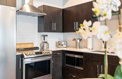 Looking for a brand-new, thoughtfully designed, modern mid-rise? This is the picture fit! This downtown condo is equipped with a swimming pool, fitness room and a gated parking garage. Spend the day exploring many of the popular restaurants, hot spots, coffee shops and bars within walking distance. Then return to a modern paradise where the fun continues! Enjoy a drink on the balcony or sit back and enjoy dinner with a view. This 2 Bedroom unit sleeps 8 comfortably.