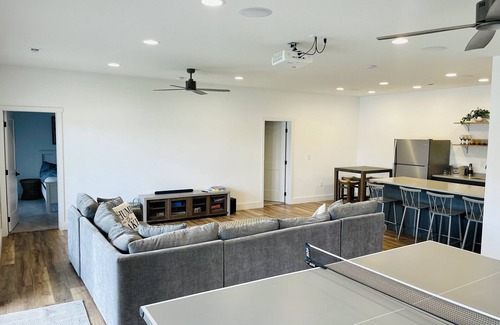 Practical Amenities: Two floors, each with its own refrigerator, commercial ice maker, and a basement kitchen bar, ensure convenience and ample space for everyone.