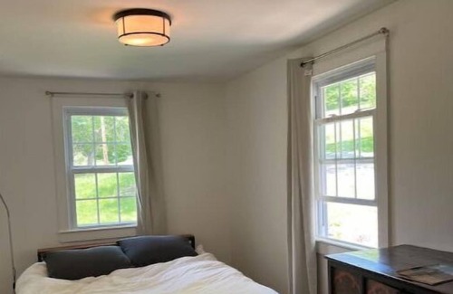 Enjoy the peace and quiet of a farmhouse located on five acres of rolling hillside at the base of a forested mountain. Our recently renovated rural retreat offers three bedrooms and two bathrooms over two stories, an open-plan kitchen, two living rooms, wood-burning stove, and all the amenities you need for either a short or long-term stay. Fast Wi-Fi and plenty of desk spaces makes this an ideal remote work situation! Plenty to see and do in the surrounding area or just enjoy the views at home.