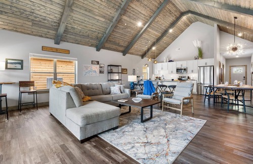 Walking up to this cozy log cabin, we hope you feel the peace of simplicity of lake life! Cook up meals or snacks in the top of the line kitchen for all your loved ones. Not much of a Michelin star chef? Table Rock Treasure is just minutes from Branson's best restaurants and takeout. Curl up in front of the cozy fireplace for family game night, or pop some popcorn for your own personal film festival. A luxury of this brand new home is that everything is one level-- everyone of all ages can be together with ease. After a day exploring all of the fun of the Ozarks, slip into one of the relaxing King suites. With luxurious lines, and each with an ensuite bathroom, you are sure to have a restful night's sleep! The kiddos will be thrilled to have their own space in the bunkroom! Make your getaway even better with $400+ in FREE tickets included daily.