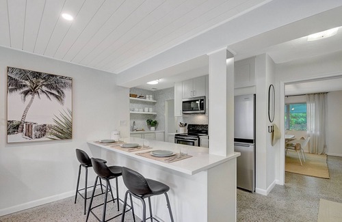 Welcome to the Paradise Palm Bungalow! The home offers a spacious newly renovated modern design. The home is in a quiet family-oriented neighborhood, conveniently located on an oversized lot with an in-ground pool. The beautiful transformation carries to the backyard where you will find a full-size swimming pool, dining area, lounge, and a screened in porch, all with full privacy from the newly plated vegetation surrounding the enclosed yard. The driveway features private parking for 2 vehicles.