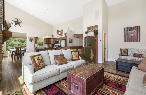 Our lake house offers a peaceful retreat with Lake Taneycomo right outside your door. It's just a short drive to Downtown Branson, known for its vibrant shopping, dining, and entertainment options, as well as the Convention Center.