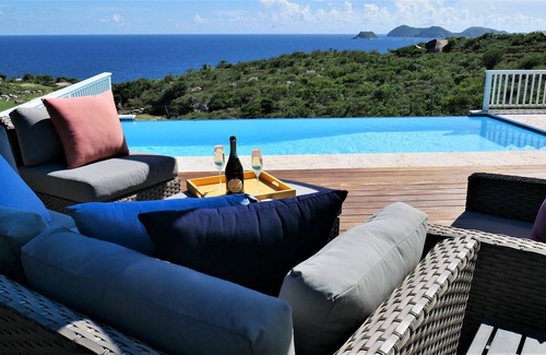 Welcome to Drift Away! Perched on the hillside above Crooks Bay, this apartment has ample outdoor spaces to enjoy the gorgeous views of the Caribbean Sea. Drift Away was updated in 2022 to add a separate parking area, an expansive deck, and an outdoor kitchen to compliment the apartment’s 2 bedrooms and infinity pool. This affordable option is perfect for a small family, a get together with friends, or an intimate retreat for newlyweds or couples looking to enjoy some time away.