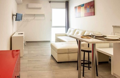 1 full bathroom with shower. Open-plan area with equipped kitchen with dining space, lounge area with sofa-double bed and flatscreen TV.