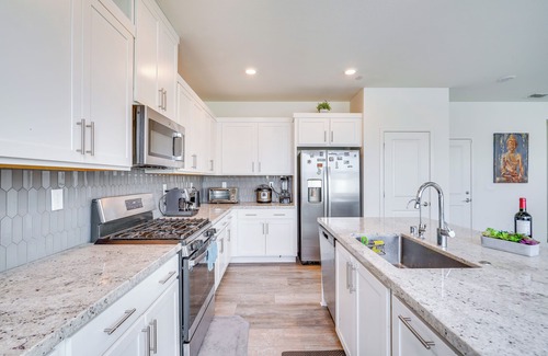 Designed for travelers seeking a blend of modern comfort and natural beauty, this vacation rental in Tracy, CA, is the perfect setting for a serene retreat. The 3-bed, 2.5-bath home is located in the newly constructed Amethyst community, and it boasts access to top-notch amenities, including an outdoor pool. Start each morning with a half-mile walk to Greymont Park, followed by a wine tasting at Wood Family Vineyards. Later, soak up the last rays of sunshine on the backyard patio.
