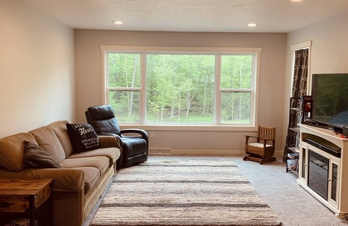 Newly built modern farm house on a secluded 7 acres 46 miles from the NFL Draft grounds. 9 guests. Lots of space to spread out in main floor living area, sitting room, and bonus room. On sweet bathroom with a soaking tub and walk in shower with 2 shower heads. Plus a full and half bath. Gourmet kitchen with a 6 burner stove and double ovens. Enjoy sitting on the front wrap around porch and back patio. Enjoy the scenery or explore the property.