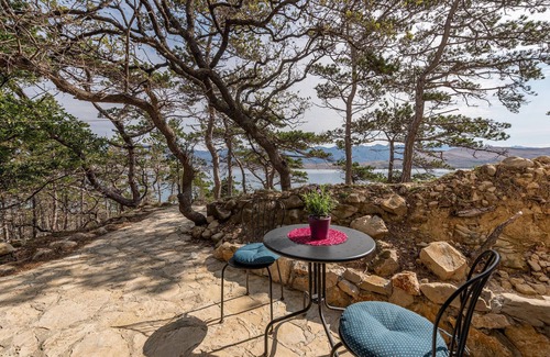 Surrounded by a private pine forest, this practical studio apartment welcomes you with fantastic panoramic water views.