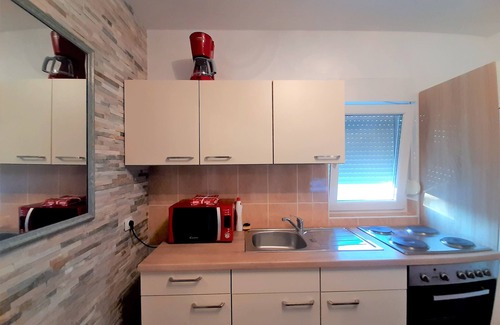 The apartment is located in a quiet location, small village Sv. Anton, 2 km from the center of Malinska and city beaches. This tastefully decorated apartment is located in a residential building, on the first floor and offers the ideal accommodation for two people. consists of 1 bedroom, bathroom and living room with sofa bed for 2 people (the mattress about 140cm x 190cm). The bathroom has a shower and basic sanitary equipment. The kitchen is equipped with an electric / gas stove, oven, refrigerator, coffee maker and all necessary kitchen utensils. The living room has direct access to the terrace. Smoking is only allowed outside the apartment, on the terrace / balcony.